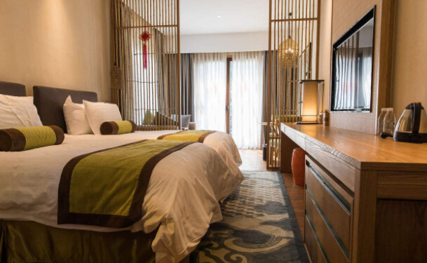 3、客房。客房中最關(guān)頭的無疑是一張和緩舒適的大床了?头恐械乃械脑O(shè)計都要圍繞床來睜開。以床為核心設(shè)置設(shè)備放置床頭燈和簡略的桌椅。一個開閉柔柔空間夠大的衣柜可以放置參觀者的全數(shù)行李,也能儉仆室內(nèi)空間。